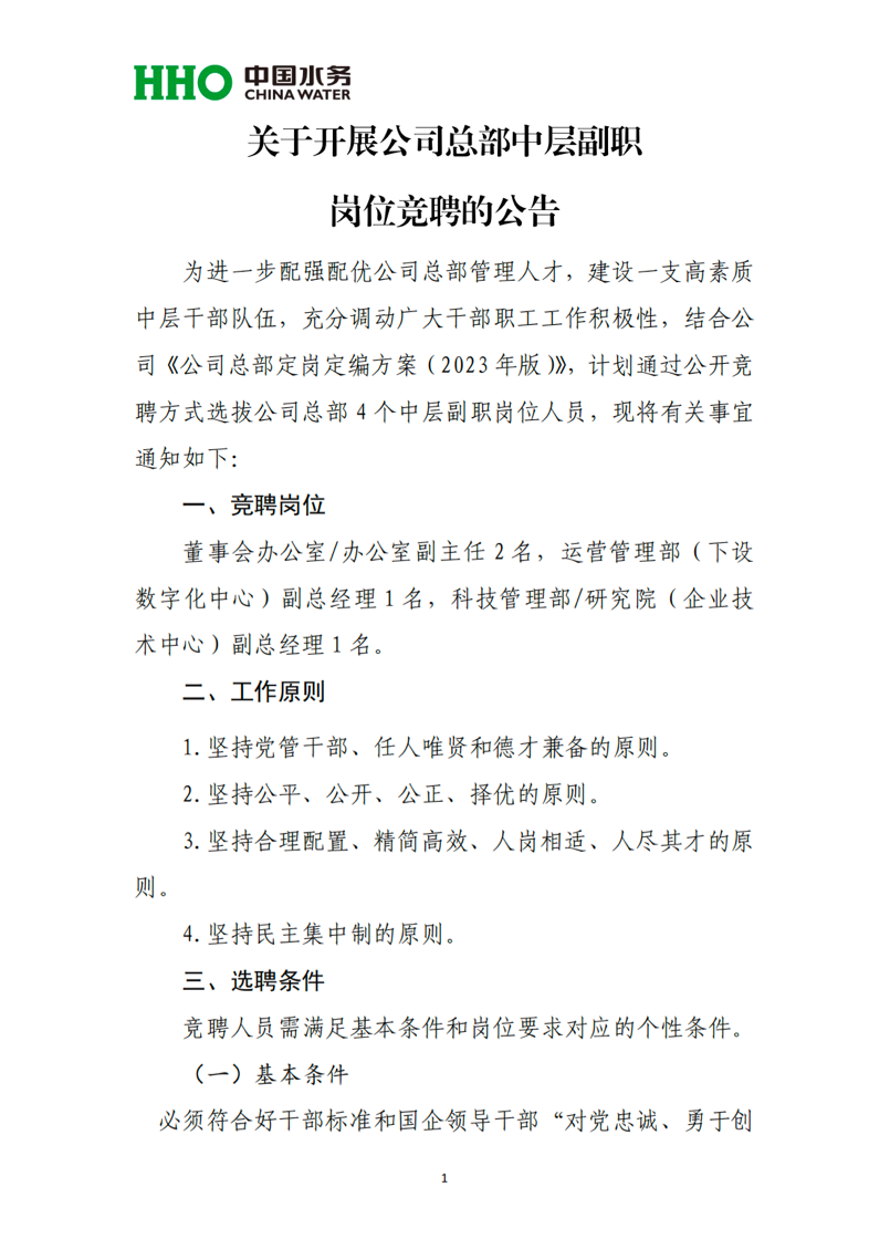 關(guān)于開展公司總部中層副職崗位競聘的公告