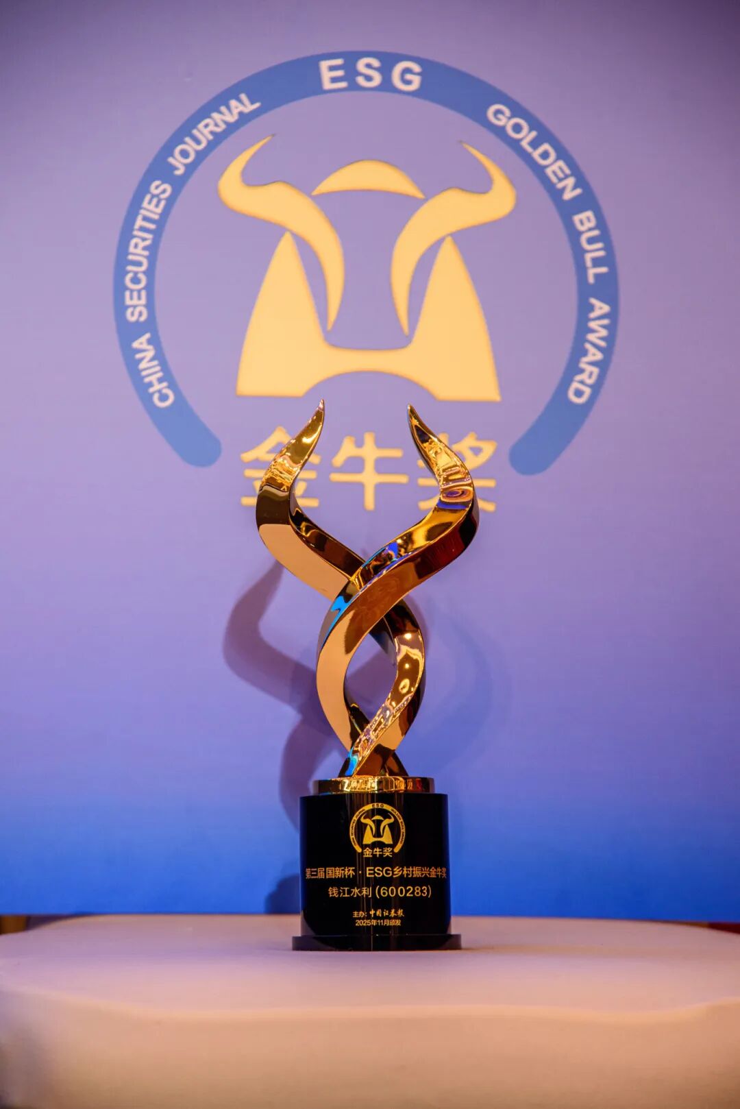 11月26日,2025年金牛企業(yè)可持續(xù)發(fā)展論壇暨第三屆“國新杯·ESG金牛獎”頒獎典禮在蘇州舉辦。中國水務(wù)所屬錢江水利憑借在ESG領(lǐng)域的持續(xù)優(yōu)異表現(xiàn),榮獲“ESG鄉(xiāng)村振興金牛獎”,連續(xù)第二年獲此系列獎項。