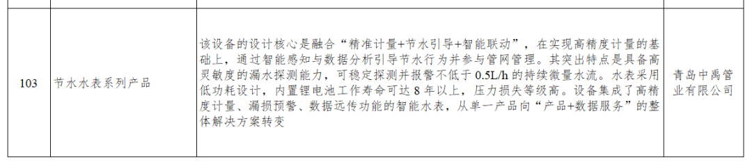 中國水務所屬山東區(qū)域總部青島水務中禹管業(yè)自主研發(fā)的“節(jié)水水表系列產(chǎn)品”憑借其“精準計量+節(jié)水引導+智能聯(lián)動”三位一體的技術(shù)優(yōu)勢成功入選,標志著中國水務在智慧節(jié)水與智能計量領域的技術(shù)實力獲得國家權(quán)威認可。