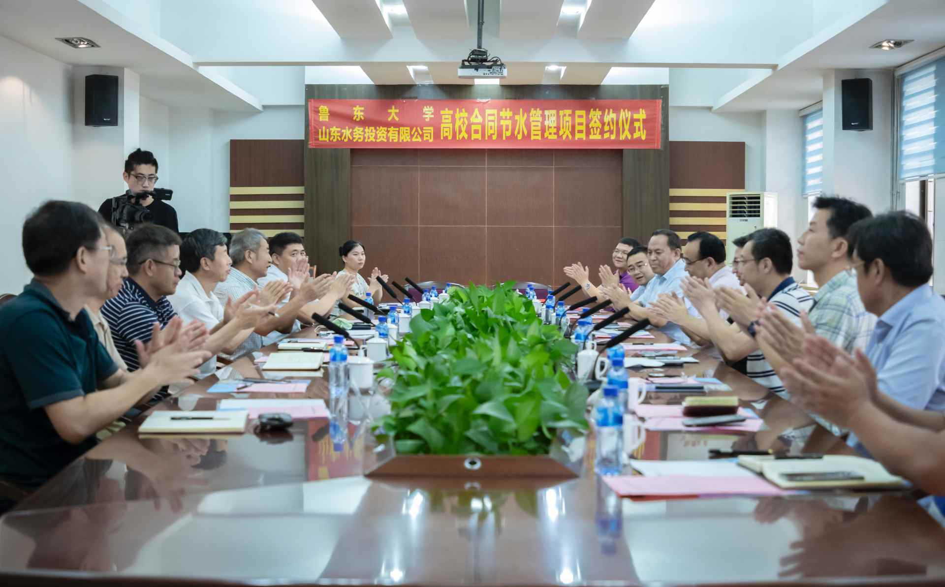 2019年8月9日,山東水務(wù)投資有限公司與魯東大學(xué)高校合同節(jié)水管理項(xiàng)目簽約儀式在煙臺(tái)舉行。山東省水利廳總規(guī)劃師姜延國(guó)、節(jié)約用水辦公室副主任袁峰,魯東大學(xué)黨委常委、副校長(zhǎng)沈東,煙臺(tái)市水利局黨組成員、河長(zhǎng)制服務(wù)中心主任李秀強(qiáng),山東水務(wù)投資有限公司副總經(jīng)理周生光,北京中水新華灌排技術(shù)有限公司副總經(jīng)理?xiàng)钛育埖瘸鱿灱s儀式。