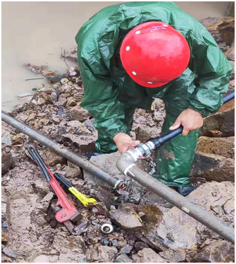 8月9號晚12點左右,舟山市岑港鎮(zhèn)椗次村公路旁山體護(hù)坡泥土局部位移擠壓山體腳下的供水管道,導(dǎo)致DN800給水管管道移位,球墨鑄鐵管管道接口漏水,造成附近400戶居民和椗次工業(yè)園區(qū)約40家企業(yè)停水。岑港營業(yè)所接到報修電話后,工作人員沉著應(yīng)對,緊急關(guān)閉該段給水管道兩端的控制閥門,隔離受損管段,減少影響擴(kuò)大。搶險隊伍緊急行動,迅速趕往事發(fā)地點,有條不紊開展搶修工作。舟山公司領(lǐng)導(dǎo)接到警情后,迅速趕到現(xiàn)場指揮督導(dǎo)搶修工作。經(jīng)過各方共同努力,經(jīng)過30多個小時晝夜連續(xù)搶修,現(xiàn)場人員及時控制了漏水情況,把對群眾的用水影響降到了最低。