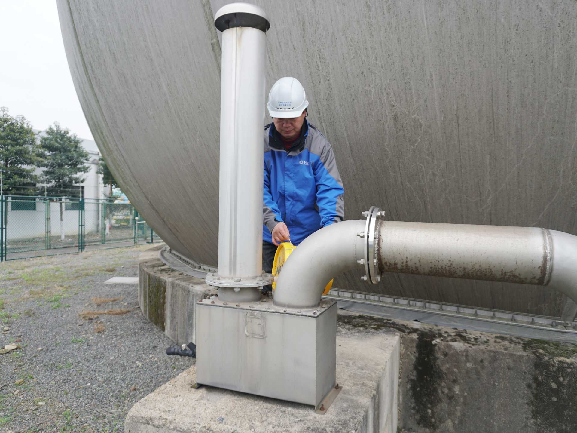 寧海興海污水通過對廠區(qū)露出地面的水管進行保溫,對沼氣罐、高溫罐和沼氣柜正負(fù)壓保護器添加防凍液,確保設(shè)備設(shè)施運行穩(wěn)定,避免污水廠冬季運行受到?jīng)_擊。