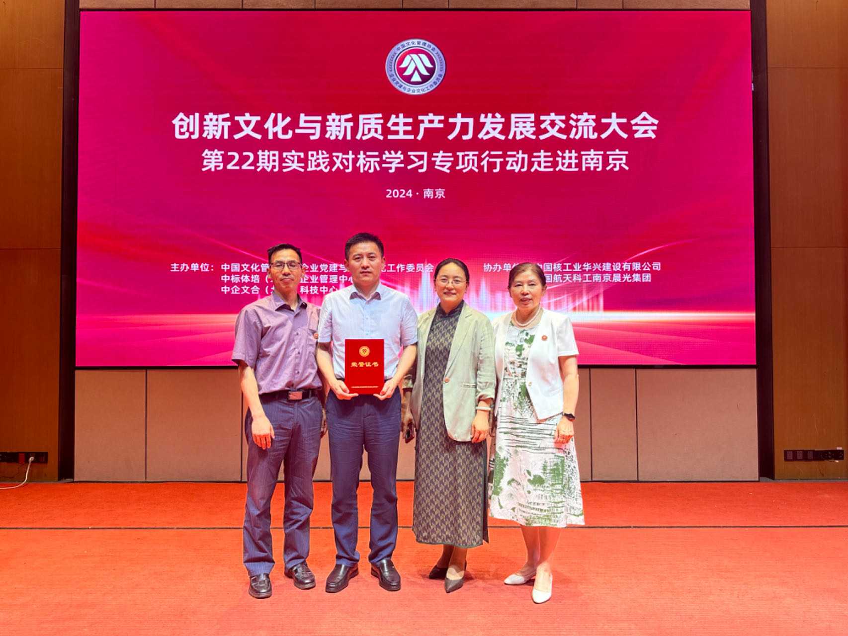 為深入學習貫徹習近平文化思想,以企業(yè)文化創(chuàng)新助推新質生產力形成與發(fā)展,2024年6月19日至21日,由中國文化管理協(xié)會企業(yè)黨建與企業(yè)文化工作委員會主辦的“創(chuàng)新文化與新質生產力發(fā)展交流大會暨第22期實踐對標學習專項行動”在南京隆重舉辦。人民日報、國務院國資委、北京工商大學馬克思主義學院等相關部門和機構的領導、專家及全國有關央企、國企代表近200人出席會議。錢江水利黨委委員、紀委書記、工會主席李月娥出席會議并接受表彰。