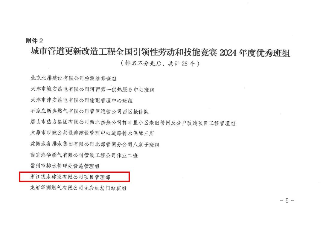 近日,由中國(guó)水務(wù)所屬錢(qián)江水利組織推薦的錢(qián)水建設(shè)項(xiàng)目管理部在“城市管道更新改造工程全國(guó)引領(lǐng)性勞動(dòng)和技能競(jìng)賽”中脫穎而出,榮獲“2024年度優(yōu)秀班組”稱(chēng)號(hào),成為全國(guó)25個(gè)獲獎(jiǎng)班組之一。