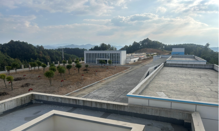 計(jì)劃覆蓋縣城周邊鄉(xiāng)鎮(zhèn)的中心水廠鐘鼓山集中供水工程廠區(qū)一角