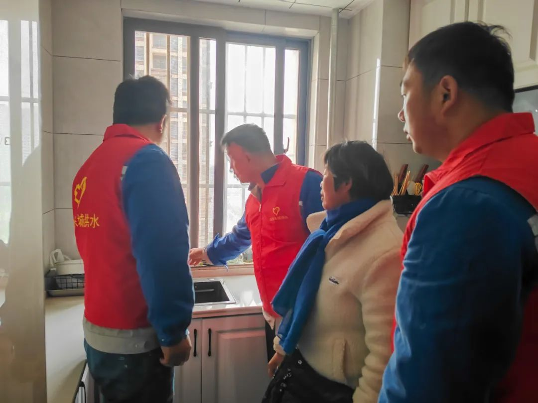江蘇水務(wù)宿州東城供水公司將主題教育與中心工作結(jié)合,積極開展“立足崗位作貢獻(xiàn)”活動。團(tuán)員和青年職工走進(jìn)居民社區(qū),開展“供水服務(wù)送上門”活動,從群眾最關(guān)心的小事切入,幫居民排查室內(nèi)供水設(shè)施有無漏水、表后用水管道有無防凍措施等,并對小區(qū)水表間進(jìn)行巡查,及時(shí)進(jìn)行補(bǔ)充安裝水表保溫套,提早應(yīng)對寒潮來襲可能對群眾生活造成的影響。