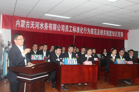 2019年1月22日,內(nèi)蒙古天河水務(wù)有限公司以“對標(biāo)先進(jìn)、查找不足、夯實(shí)基礎(chǔ)、提升管理”為主題,舉辦了一場別開生面的“員工標(biāo)準(zhǔn)化行為規(guī)范及相關(guān)制度知識競賽”活動,以寓教于樂的創(chuàng)新形式,檢驗(yàn)員工對標(biāo)準(zhǔn)化行為規(guī)范、各項(xiàng)規(guī)章制度及安全生產(chǎn)知識的掌握程度。