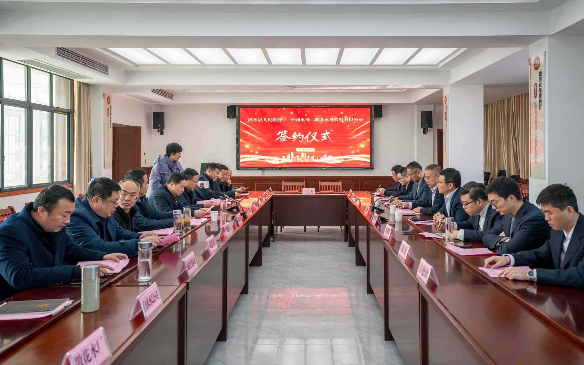 浠水縣政府辦公室、供水專班、財政局、住建局、水利和湖泊局、司法局、市場監(jiān)督局、城發(fā)集團、長投公司主要負責人以及中國水務華中區(qū)域總部相關負責人參加了簽約儀式。