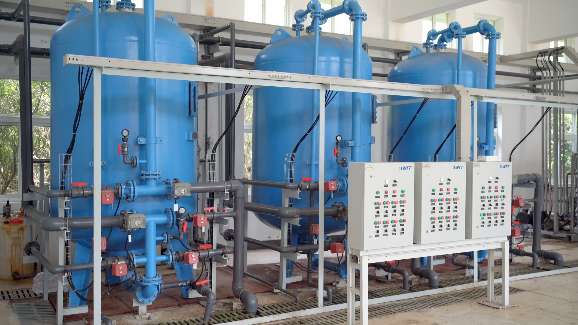 初建于2000年的永康老橋下水廠,供水規(guī)模一度從1.25萬(wàn)立方米/日擴(kuò)建到3.75萬(wàn)立方米/日,隨著服務(wù)人口快速增長(zhǎng),用水量和水質(zhì)仍難以滿足需求。2021年,錢江水利對(duì)水廠進(jìn)行異地遷擴(kuò)建,日處理能力增至6萬(wàn)立方米/日,從一個(gè)常規(guī)鄉(xiāng)鎮(zhèn)水廠蝶變到全國(guó)為數(shù)不多、擁有深度水處理工藝和光伏發(fā)電系統(tǒng)的現(xiàn)代化高等級(jí)鄉(xiāng)鎮(zhèn)水廠,解決了附近20萬(wàn)農(nóng)戶生活生產(chǎn)用水需求。在此基礎(chǔ)上,錢江水利通過(guò)管網(wǎng)延伸實(shí)施附近兩個(gè)片區(qū)農(nóng)飲水達(dá)標(biāo)提標(biāo)工程,新增受益人口近1萬(wàn)人,庫(kù)區(qū)農(nóng)民“同飲一管水”全覆蓋。舟山島北水廠設(shè)計(jì)供水規(guī)模為16萬(wàn)立方米/日,目前建成8萬(wàn)立方米/日,也采用國(guó)際通用的深度水處理技術(shù),于2019年接通本島最后一個(gè)鄉(xiāng)鎮(zhèn)供水站點(diǎn),使得2.3萬(wàn)多居民喝上高品質(zhì)的深度處理水,實(shí)現(xiàn)本島城鄉(xiāng)深度處理水全覆蓋。