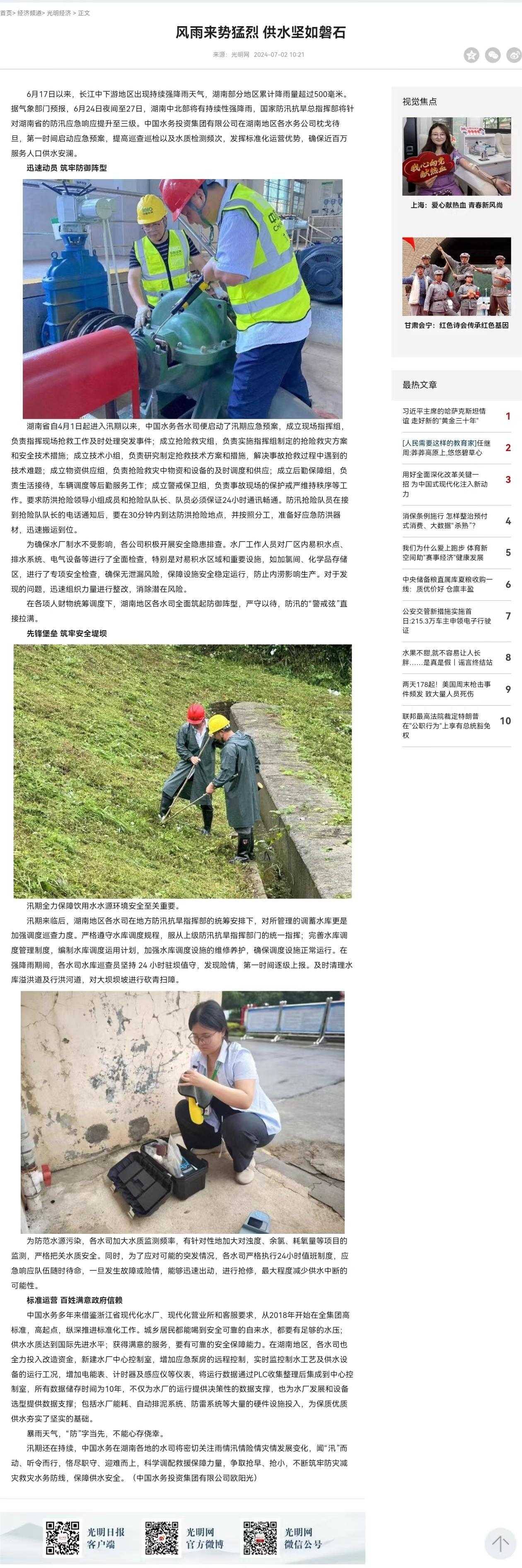 導(dǎo)讀:7月2日,光明網(wǎng)報(bào)道中國(guó)水務(wù)在湖南地區(qū)各水務(wù)公司防汛保供水紀(jì)實(shí)。