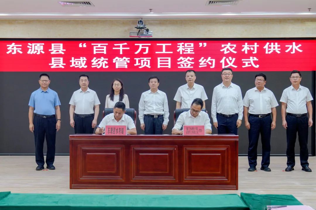 10月17日,中國(guó)水務(wù)所屬錢(qián)江水利開(kāi)發(fā)股份有限公司與廣東省河源市東源縣舉行“百千萬(wàn)工程”農(nóng)村供水縣域統(tǒng)管項(xiàng)目簽約儀式。水利部農(nóng)村水利水電司副司長(zhǎng)周雙,廣東省水利廳一級(jí)巡視員孟帆,廣東省河源市副市長(zhǎng)謝春艷,東源縣委書(shū)記秦衛(wèi)民,中國(guó)水務(wù)投資集團(tuán)有限公司黨委書(shū)記、董事長(zhǎng)薛志勇,副總經(jīng)理史紅偉,錢(qián)江水利開(kāi)發(fā)股份有限公司黨委書(shū)記、總經(jīng)理王天強(qiáng)出席簽約儀式,東源縣委副書(shū)記、縣長(zhǎng)劉大榮主持簽約儀式。