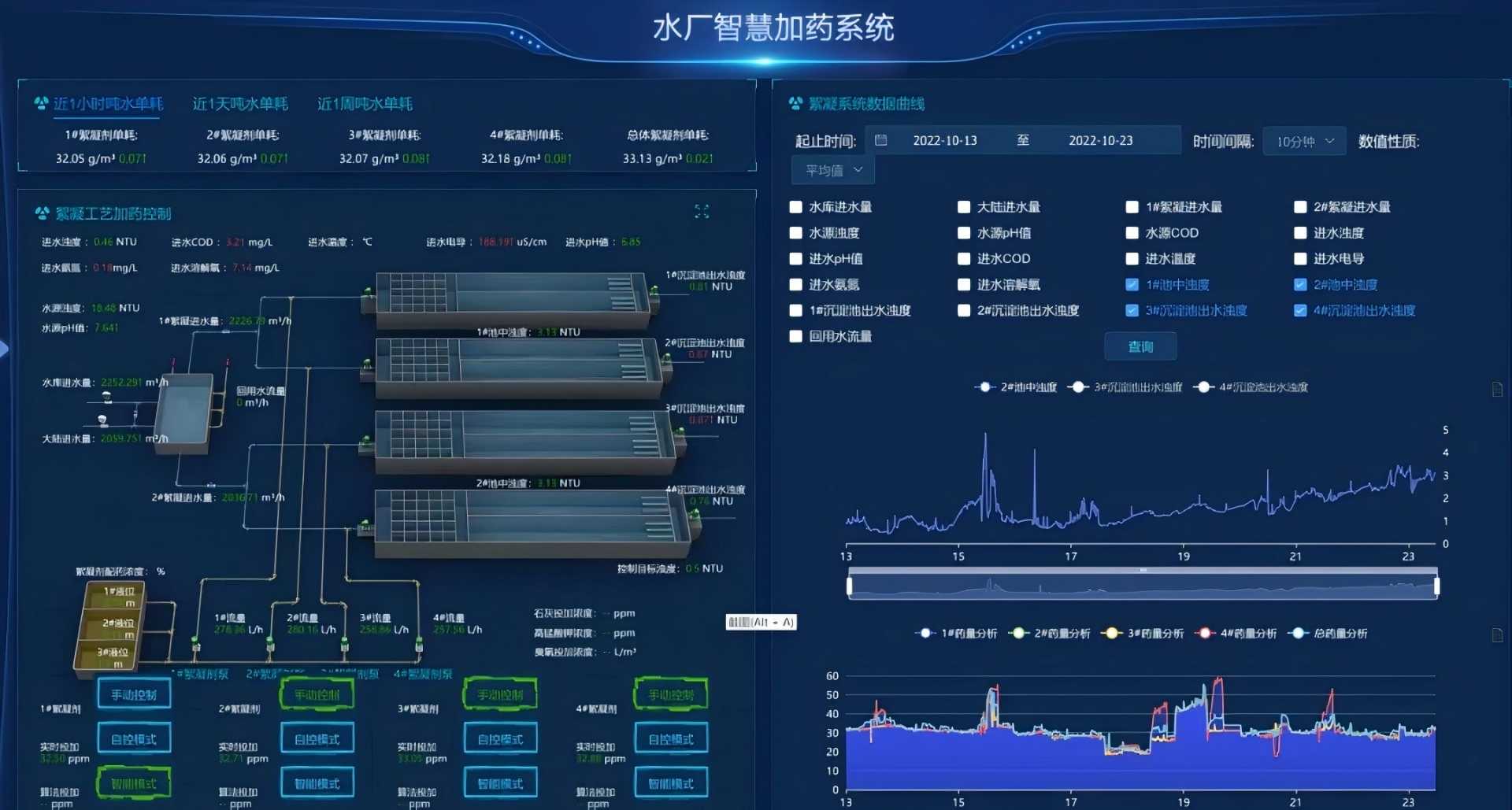 項(xiàng)目在保證出廠水水質(zhì)的前提下減少了藥劑使用量,同時(shí)降低淤泥沉淀總量,實(shí)現(xiàn)經(jīng)濟(jì)效益最大化;解決了實(shí)際工作中依靠經(jīng)驗(yàn)來(lái)決定藥劑投加導(dǎo)致的資源浪費(fèi)和水質(zhì)不穩(wěn)定問題,保障了水質(zhì)穩(wěn)定安全;有效降低了運(yùn)維人員工作量,進(jìn)一步推進(jìn)水廠向少人化無(wú)人化智慧化發(fā)展,實(shí)現(xiàn)經(jīng)濟(jì)、社會(huì)、管理三個(gè)效益同步提升。