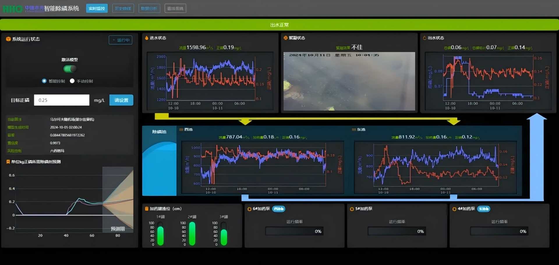系統(tǒng)采用了AI人工智能技術(shù),綜合考慮污水廠生產(chǎn)過程中所面臨的諸多因素,憑借大數(shù)據(jù)分析和算法不斷自我學(xué)習(xí),從而實(shí)現(xiàn)對(duì)各參數(shù)的實(shí)時(shí)計(jì)算與藥劑投加量的同步調(diào)整,不僅保障了污水處理廠出水總磷穩(wěn)定達(dá)標(biāo),還可降低藥劑消耗。