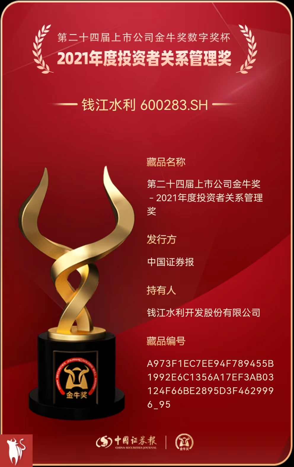 公司將以此次獲獎為契機,進一步優(yōu)化公司治理結(jié)構(gòu),夯實規(guī)范發(fā)展基礎(chǔ),提高信息披露質(zhì)量和透明度,提升投資者關(guān)系管理服務(wù)水平,不斷探索錢江水利高質(zhì)量發(fā)展之路。