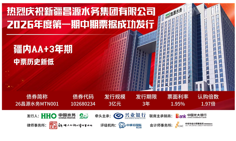 1月20日,昌源水務(wù)在中國水務(wù)財(cái)金部的專業(yè)指導(dǎo)、資源對接與全力支持下,成功發(fā)行2026年度第一期中期票據(jù),發(fā)行規(guī)模3億元,期限3年,票面利率1.95%,發(fā)行工作圓滿落地、成效顯著。