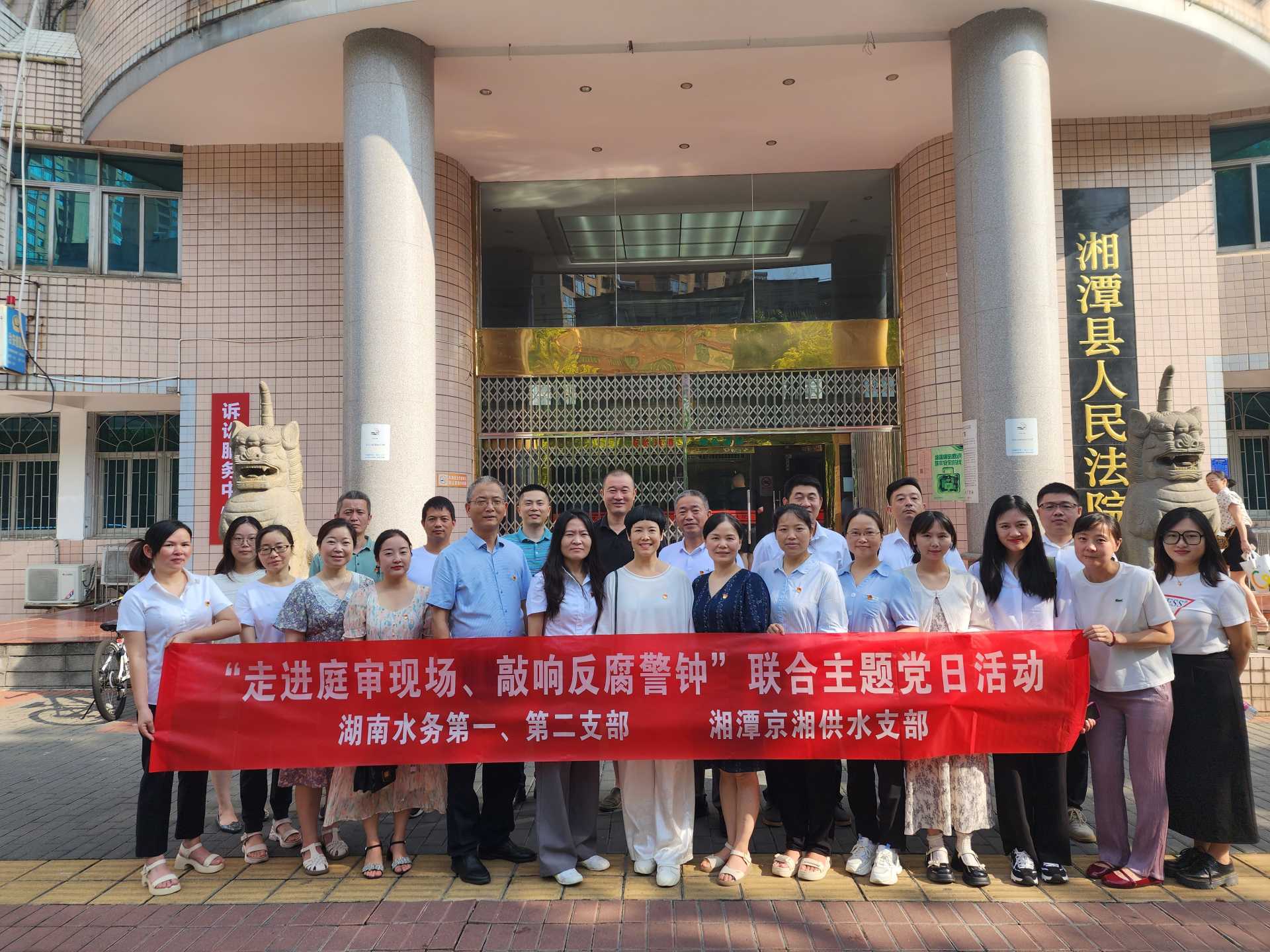為進(jìn)一步強(qiáng)化警示教育,增強(qiáng)紀(jì)律意識,筑牢思想防線,有效提升公司黨員干部的廉潔從業(yè)意識。8月3日,湖南水務(wù)第一、二黨支部聯(lián)合湘潭京湘供水黨支部組織黨員干部赴湘潭縣人民法院旁聽案件庭審,敲響廉潔警鐘。