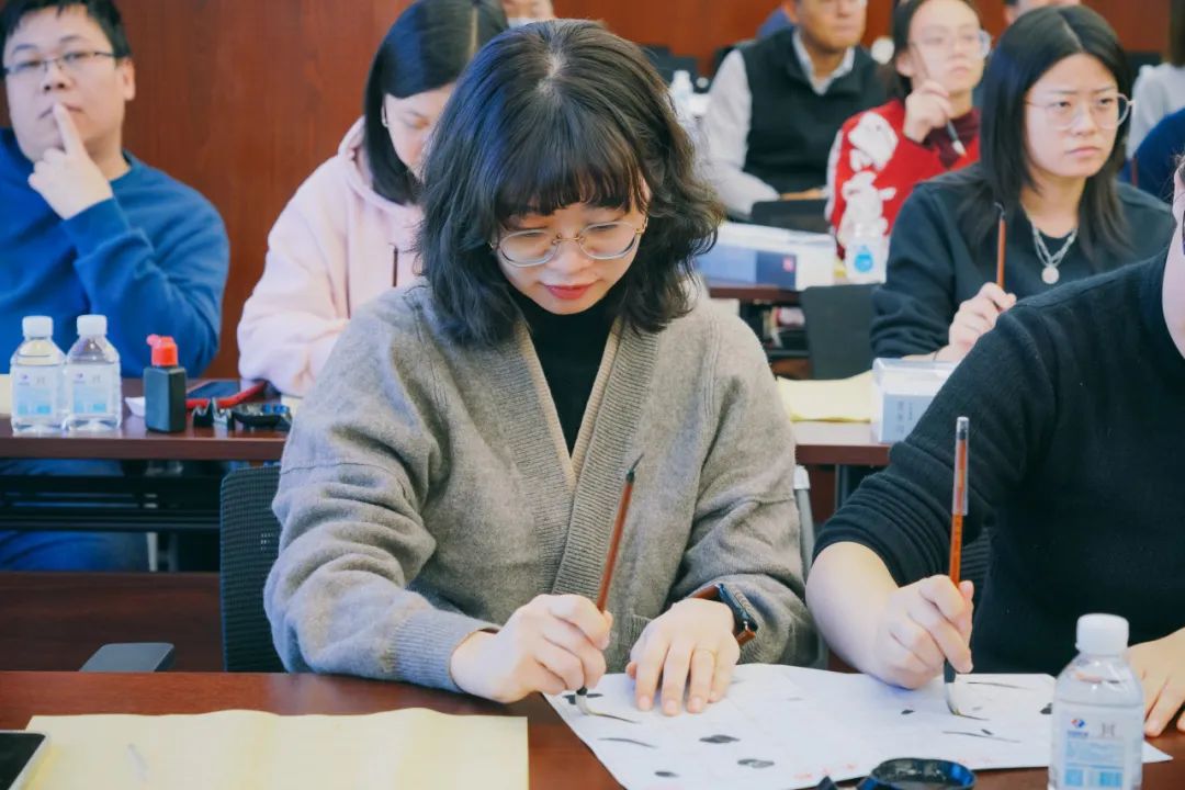 此次講座北京云澤堂書院院長,中國書法家協(xié)會會員,原中央國家機關(guān)書畫協(xié)會副主席,中國榜書書法家協(xié)會副主席,中國書畫家聯(lián)誼會理事,中共中央黨史和文獻研究院書畫藝術(shù)顧問薛鏞老師圍繞書法審美為主題,深入淺出地講解了如何欣賞一幅書法作品,通過書法的演變過程講解各個時期的審美特性。同時,課上薛老師指出,學習書法不能閉門造車,要多看多學,不僅要學習書法理論知識,更要進行大量的實踐練習,在博采百家之長的基礎(chǔ)上建立自己的學習框架和目標,才能不斷進步。
